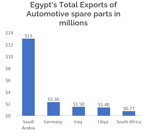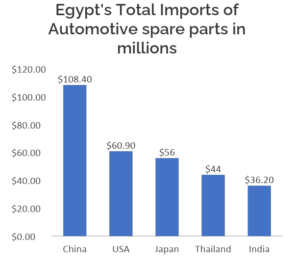According to trade economy Egypt imported $504.5 million worth of automotive spare parts in 2023, with the majority coming from China ($108M), the USA ($60M), Japan ($56M), Thailand ($44M), Thailand ($43.9M), India(36.3M), South Korea(30.5M). In contrast, its exports totaled just $12.9 million, with key destinations including Germany (647.8K), Libya (190K), Spain(31.40K), Chad(16.59K), and Sudan(8K). This highlights a large trade imbalance and underlines an untapped potential in the export segment.